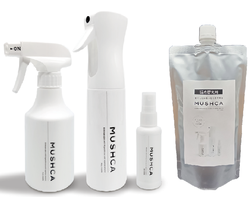 MUSHCA(ムシュカ)は、「香りも成分も残さずニオイを消す」ことで無臭化を目指す、新感覚の消臭スプレーです。
