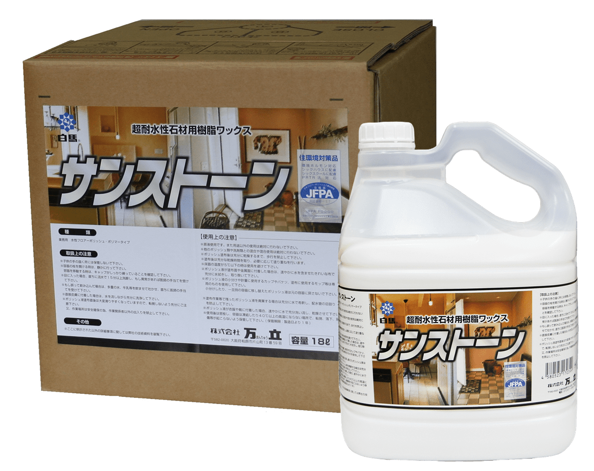 万立は創業時に油性・水性の「つや出しワックス」からスタートし、現在の主流は「樹脂ワックス」となりましたが、床面のツヤ・光沢で清らかな空間を演出するワックスは原点であり、最も思い入れの強い事業です。